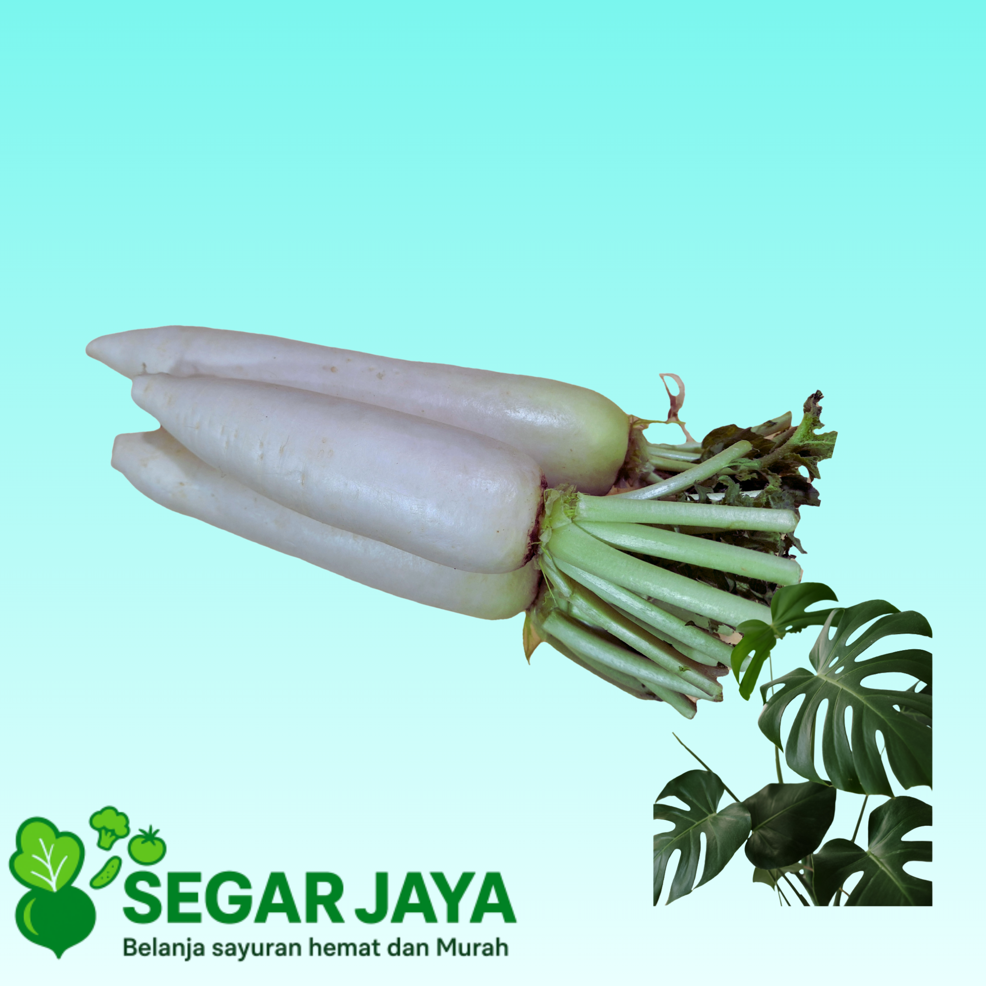 Lobak adalah sayuran akar dari famili Cruciferae yang memiliki umbi berbentuk seperti wortel namun berwarna putih, dan memiliki rasa yang khas yaitu sedikit pedas dan segar. Tumbuhan ini berasal dari Tiongkok dan banyak dibudidayakan di Indonesia serta populer dalam masakan Asia, seperti Jepang dan Korea. Lobak dikenal kaya akan nutrisi seperti vitamin C, asam folat, kalium, kalsium, serta kaya serat dan antioksidan yang baik untuk kesehatan.Penjual : Segar Jaya
